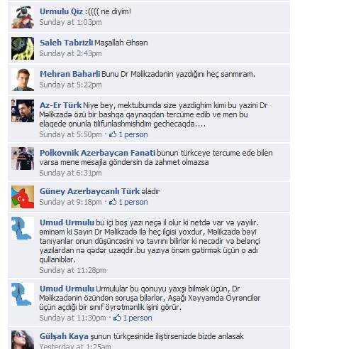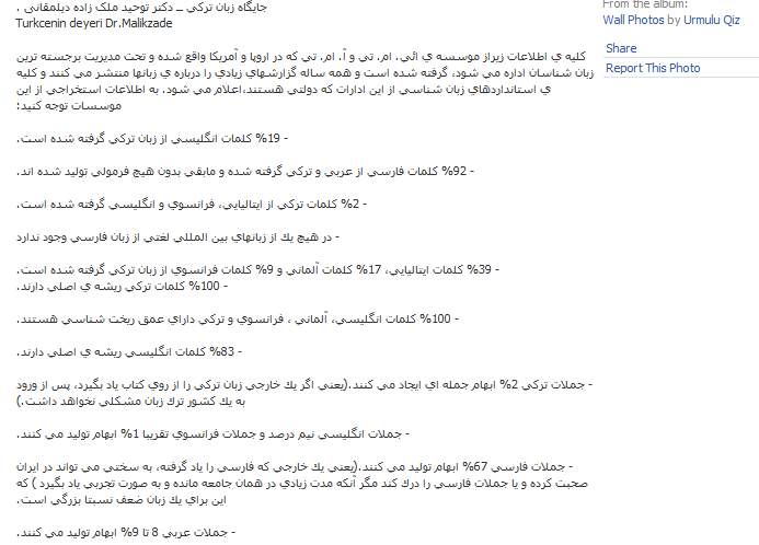بالاخره به دوران رسیده اند یا کمرشان زیر قرض خم شده؟ اگر کمرشان زیر قرض خم شده چطور به دوران رسیدند؟ به آن محلات بافرهنگ هم که ترکی حرف می زنند و به قول شما اگر فارسی حرف بزنی تو را … می کنند، می گویند محلات بی فرهنگ چون هیچ آدم عاقلی، دیگری را برای تکلم به زبان دیگر، … نمی کند مگر از همان ترکهای کولتورمند تبریز باشد. در مورد آمار واژه های فارسی و عربی در زبان ترکی هم هر وقت سندی یا مرجع معتبری آوردی می توانی چنین ادعایی کنی ما در همین وبسایت چند سند از زبانشناسان شناخته شده نشان دادیم که خلاف گفته ی شما است.